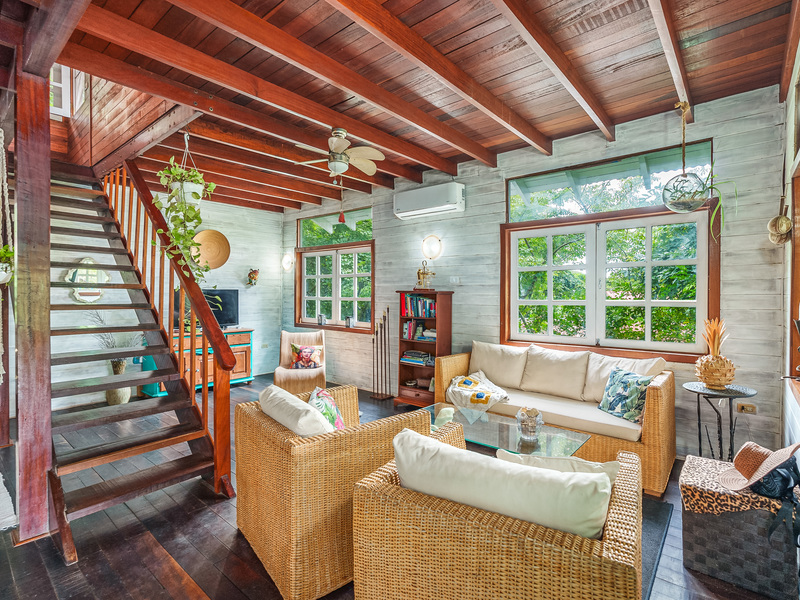 The main house, a 3-bedroom Caribbean-style classic gem with a remodeled kitchen, offers wonderful forest views. Upgrades including enhanced interior lighting, a newand modern wifi-enabled AC units in the master and living room. The home has recently been painted inside and out; it has digital locks for added security. The home’s refinished deck is the perfect space for enjoying the outdoors.